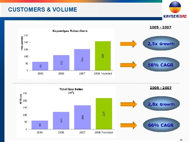 CUSTOMERS & VOLUME 2005 - 2007 2, 5 x Growth 58% CAGR 2005 - 2007 2, 8 x Growth 66% CAGR 10