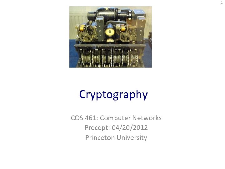 1 Cryptography COS 461: Computer Networks Precept: 04/20/2012 Princeton University