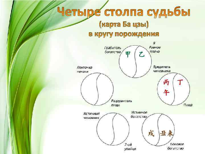 1 2 3 4 Дерево ЯН Дерево ИНЬ Огонь ЯН Огонь ИНЬ Цзя И Бин Дин Человека, личность которого представлена знаком Дерева Ян, можно охарактеризовать, как натуру упрямую и принципиальную. Подобно большому могучему стволу он абсолютно не гибкий, и сломить его практически невозможно. Дерево Инь - это трава, цветы, растения. Характер человека, ассоциируемого с Иньским Деревом, отличается прежде всего своей феноменальной гибкостью. Как вьющийся цветок, он стремится вверх к небу и солнцу, плавно обходя все препятствия. Личность человека, ассоциируемого с Янским Огнем, сравнима с солнцем, теплом и безудержной энергией. Он легок в общении, абсолютно не злопамятен и уверенно идет по жизни, освещая своим энтузиазмом все вокруг. Такой человек любознателен, начитан и открыт ко всему новому, обладая незаурядным умом. Иньский Огонь подобен свету факела, свечи, огню костра. Какими же свойствами элемент Огонь Инь наделяет личность? Мерцающее пламя нестабильно, изменчиво, порой достаточно ветерка, чтобы повлиять на его очертания. Обладатель такого характера чувствителен и переменчив, уязвим, склонен к волнениям.