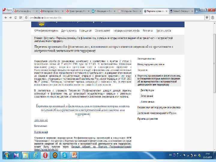 *Операция с денежными средствами или иным имуществом подлежит обязательному контролю в случае, если хотя бы одной из сторон является: *1. организация или физическое лицо, в отношении которых имеются сведения об их причастности к экстремистской деятельности или терроризму, *2. либо юридическое лицо, прямо или косвенно находящееся в собственности или под контролем таких организации или лица, *3. либо физическое или юридическое лицо, действующее от имени или по указанию таких организации или лица.