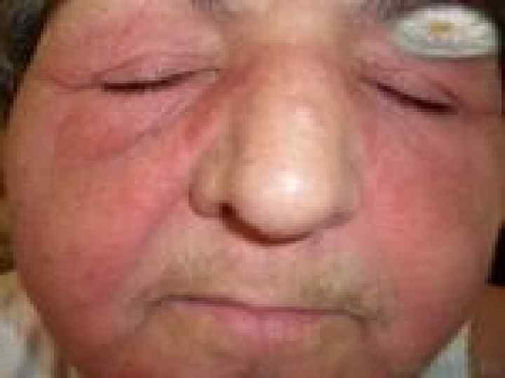 Синдром Роуэлла: көп формалы экссудатты эритема, көптеген бөртпелердің болуы тән, күшті ісінумен сипатталады