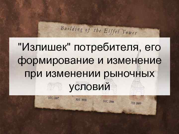 "Излишек" потребителя, его формирование и изменение при изменении рыночных условий