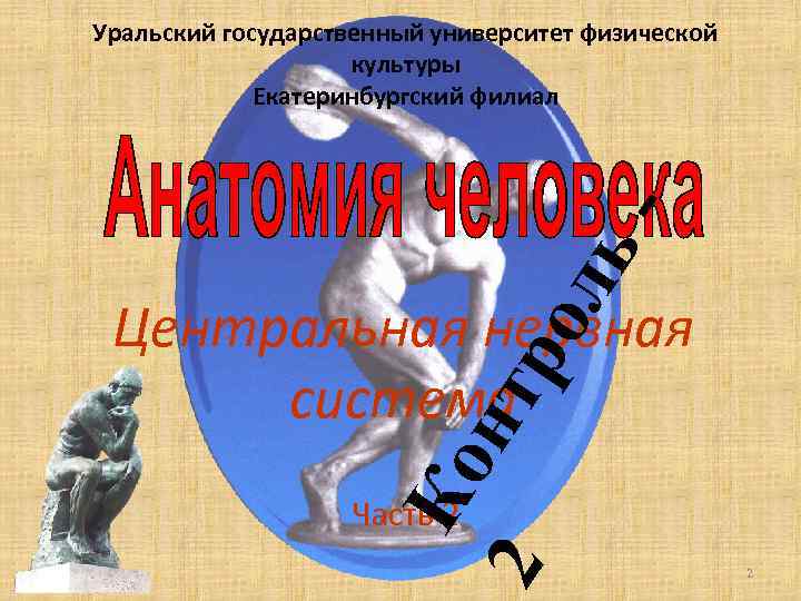 ль - Уральский государственный университет физической культуры Екатеринбургский филиал Ко нт 2 ро Центральная нервная система Часть 2 2