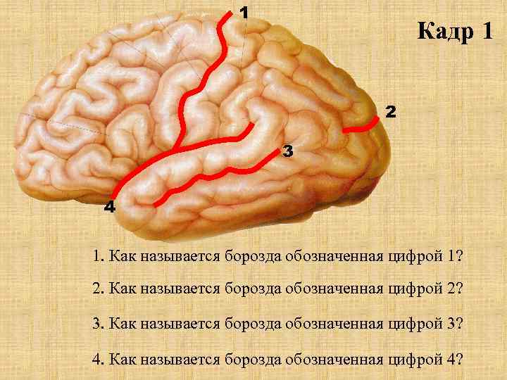 1 Кадр 1 2 3 4 1. Как называется борозда обозначенная цифрой 1? 2. Как называется борозда обозначенная цифрой 2? 3. Как называется борозда обозначенная цифрой 3? 4. Как называется борозда обозначенная цифрой 4?