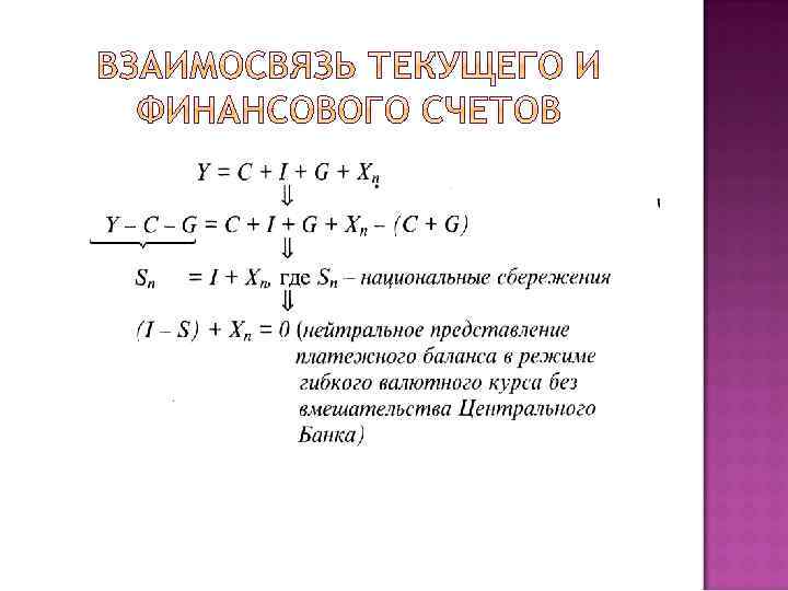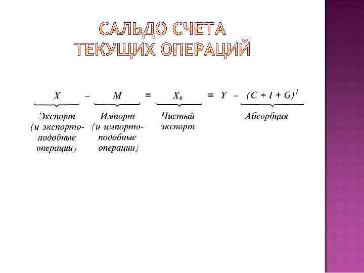 характеризует, каким образом формируется сумма, получаемая из-за границы в обмен на отечественный чистый экспорт (включая чистую выручку от использования отечественных факторов производства); отражает сальдо счета текущих операций