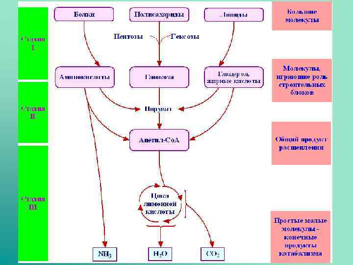 Метаболизм Катаболизм Анаболизм Распад Биосинтез Большие молекулы – небольшие Небольшие молекулы – большие Освобождение энергии Потребление энергии