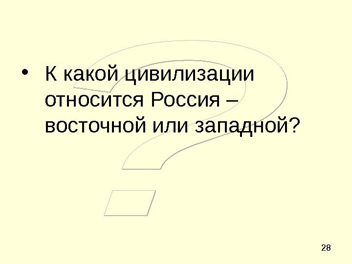 28 • К какой цивилизации относится Россия – восточной или западной?
