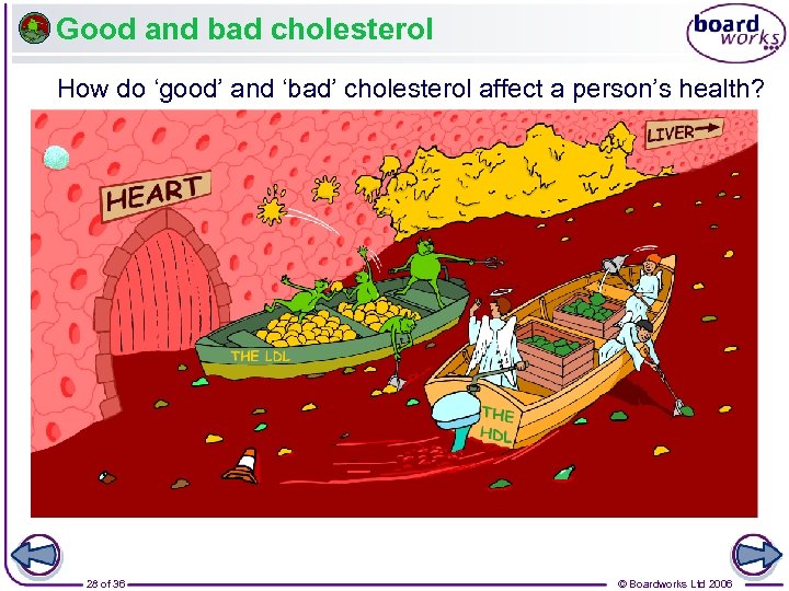 Good and bad cholesterol How do ‘good’ and ‘bad’ cholesterol affect a person’s health? 28 of 36 © Boardworks Ltd 2006