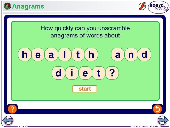 Anagrams 35 of 36 © Boardworks Ltd 2006