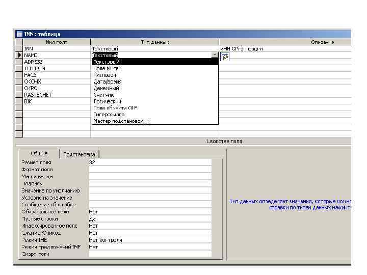 5. Определение свойств полей и таблицы в целом