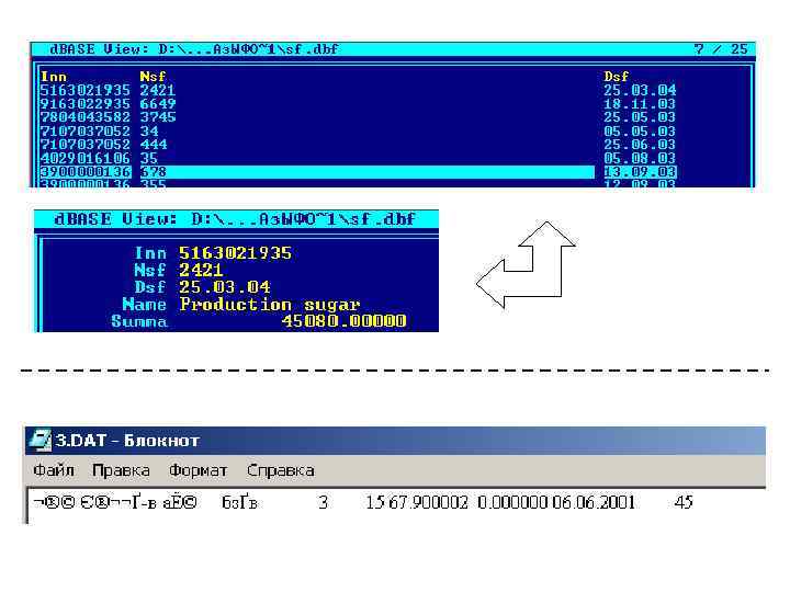 1. Основные понятия 1. 1. Понятие БД header INN Char(Text) 10 top 7708039330 00000123 12. 11. 05 7708039330 00001667 … Character Go top movefirst 7708039330 … … … Numeric (Integer, Float) Go bottom movelast … … … bottom NSF Char(Text) 8 DSF Date 8(+time) Date Logical Boolean Memo