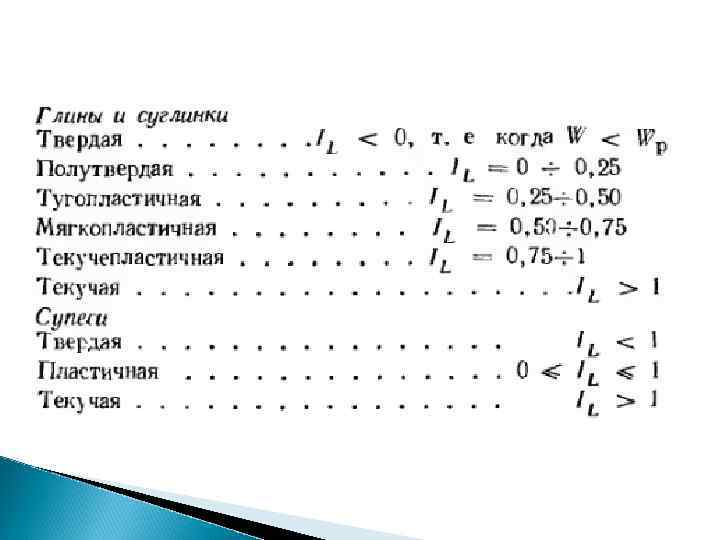 Разновидность глинистых грунтов Число пластичности Супесь 1 -7 Суглинок 7 -17 Глина > 17