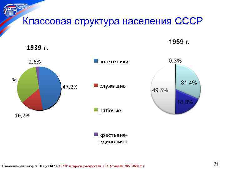 Классовая структура населения СССР Отечественная история. Лекция № 14. СССР в период руководства Н. С. Хрущева (1953 1964 гг. ) 51