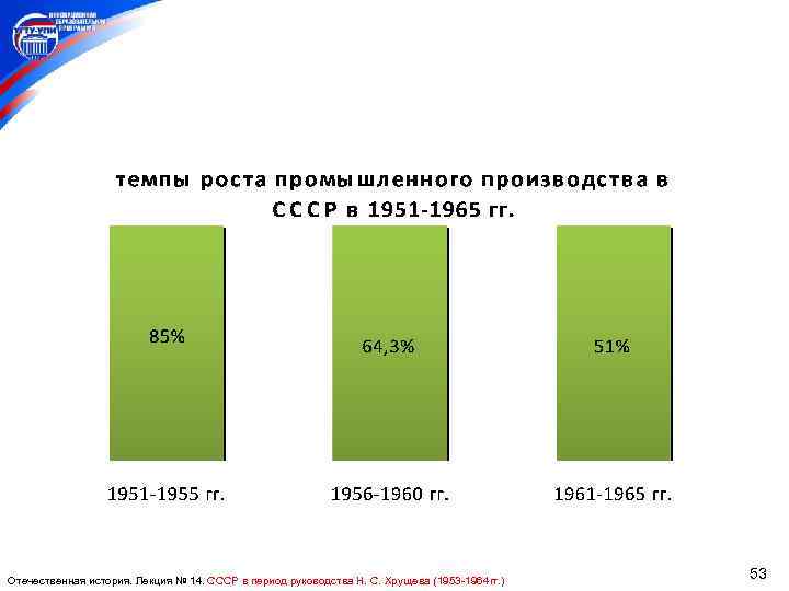 Отечественная история. Лекция № 14. СССР в период руководства Н. С. Хрущева (1953 1964 гг. ) 53