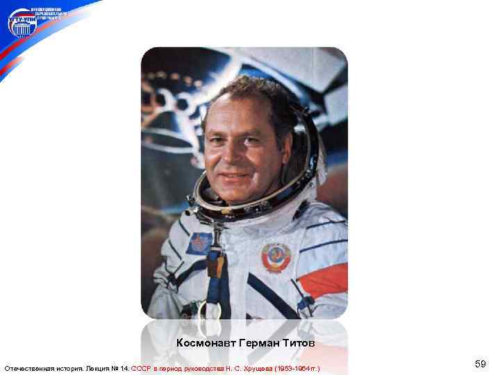 Космонавт Герман Титов Отечественная история. Лекция № 14. СССР в период руководства Н. С. Хрущева (1953 1964 гг. ) 59