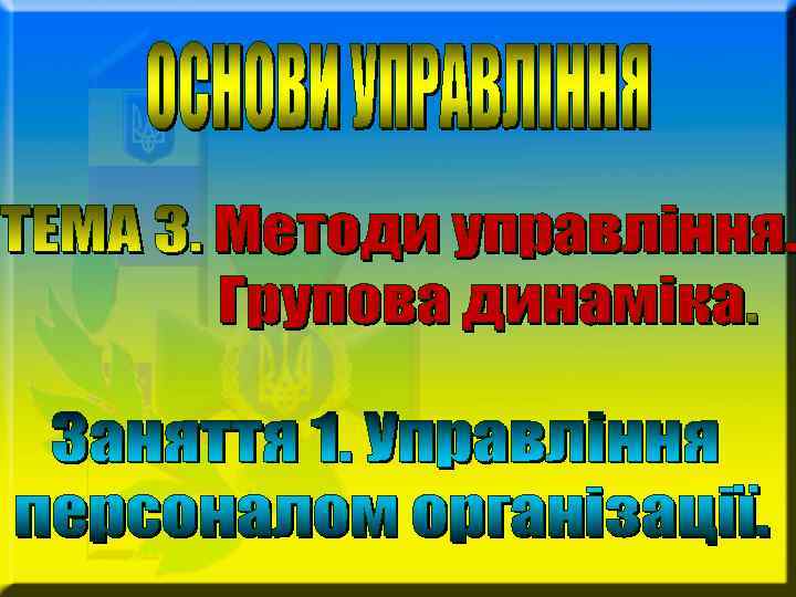 МЕТОДИ УПРАВЛІННЯ – ЗАСОБИ ЦІЛЕСПРЯМОВАНОГО ВПЛИВУ НА КОЛЕКТИВ ОРГАНІЗАЦІЇ АБО НА ОКРЕМИХ ЙОГО ЧЛЕНІВ РОЛЬ – СТВОРЕННЯ УМОВ ДЛЯ ЧІТКОЇ ОРГАНІЗАЦІЇ ПРОЦЕСІВ УПРАВЛІННЯ, ВИКОРИСТАННЯ СУЧАСНОЇ ТЕХНІКИ І ПРОГРЕСИВНОЇ ТЕХНОЛОГІЇ ОРГАНІЗАЦІЇ ПРАЦІ, ЗАБЕЗПЕЧЕННЯ ЇХ МАКСИМАЛЬНОЇ ЕФЕКТИВНОСТІ ПРИ ДОСЯГНЕННІ ПОСТАВЛЕНОЇ МЕТИ ВИМОГА – МЕТОДИ УПРАЛІННЯ ПОВИННІ МАТИ СВОЮ МОТИВАЦІЙНУ ХАРАКТЕРИСТИКУ, ЩО ВИЗНАЧАЄ НАПРЯМ ЇХНЬОЇ ДІЇ ГРУПИ МЕТОДІВ УПРАВЛІННЯ • • • ЕКОНОМІЧНІ ОРГАНІЗАЦІЙНО-РОЗПОРЯДЧІ (АДМІНІСТРАТИВНІ) СОЦІАЛЬНІ (СОЦІАЛЬНО-ПСИХОЛОГІЧНІ)