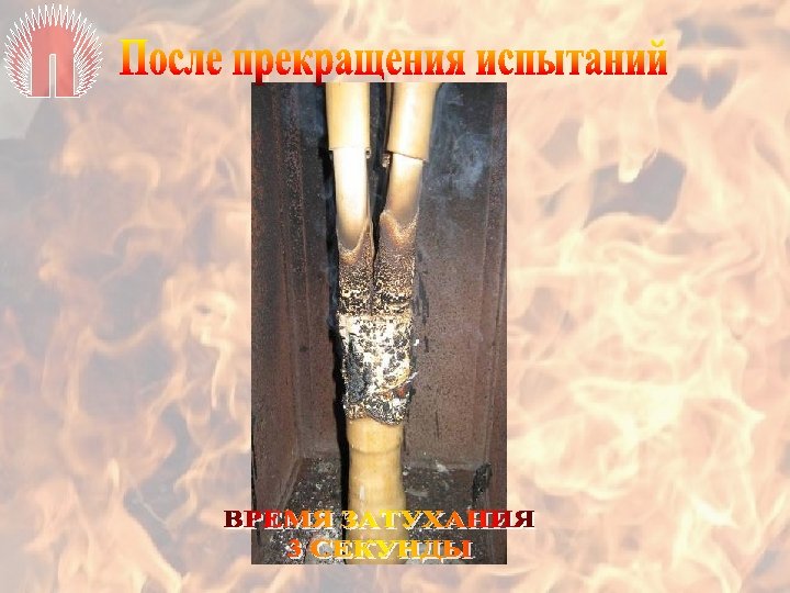 Муфта выдержала испытание, если расстояние от нижней части наконечника до обугленной или поврежденной пламенем части муфты составляет не менее 50 мм, время самостоятельного горения не более 60 с.