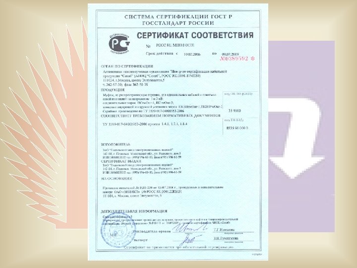 №№ пп Наименование характеристик допустимая Значение рабочая Методы испытаний 90 - 1. Максимальная температура, 0 С 2. Предел прочности при растяжении, Н/мм 2 Не менее 10 ГОСТ Р МЭК 60811 -1 -1 3. Относительное удлинение при разрыве, % Не менее 400 ГОСТ Р МЭК 60811 -1 -1 4. Предел прочности при растяжении после термического старения (7 суток при Т=1100 С), максимальное изменение, % +30 ГОСТ Р МЭК 60811 -1 -1 ГОСТ Р МЭК 811 -1 -2 5. Относительное удлинение термического старения (7 суток при Т=1100 С), максимальное изменение, % +30 ГОСТ Р МЭК 60811 -1 -1 ГОСТ Р МЭК 811 -1 -2 6. Плотность, г/см 3 7. Кислородный индекс, % 8. Удельное объемное сопротивление, Ом см после 1, 40+0, 03 Не менее 28 электрическое 1012 ГОСТ 12. 1. 044 -89, ГОСТ 21793 -76 ГОСТ 6433. 1 -71