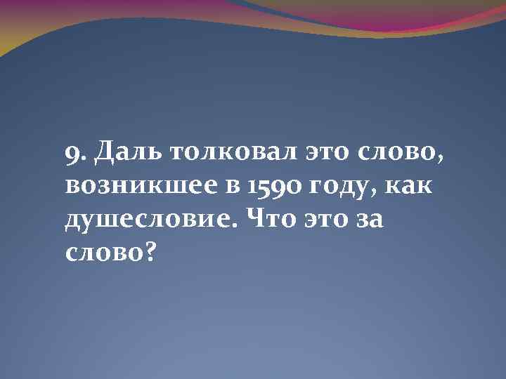 9. Даль толковал это слово, возникшее в 1590 году, как душесловие. Что это за слово?