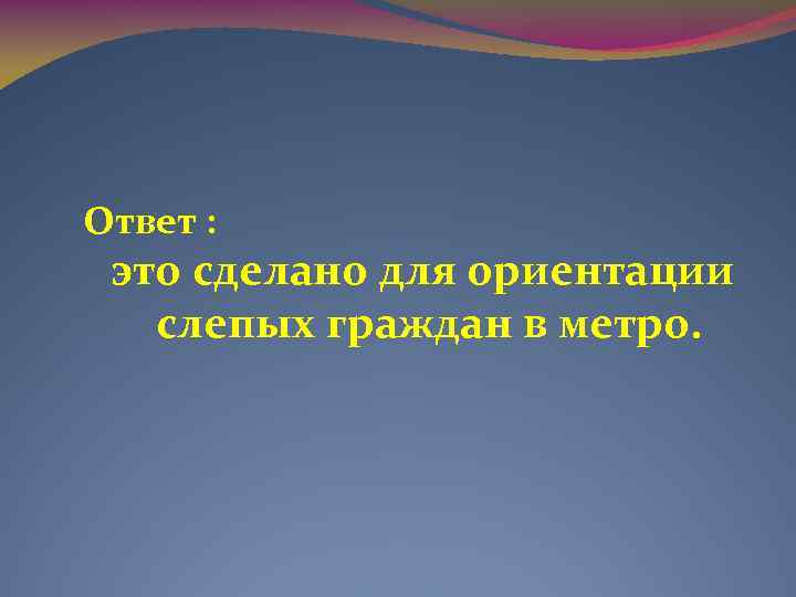 Ответ : это сделано для ориентации слепых граждан в метро.