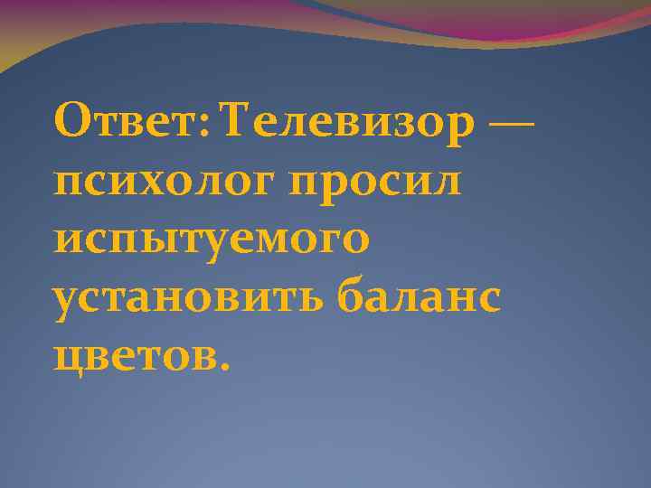 Ответ: Телевизор — психолог просил испытуемого установить баланс цветов.