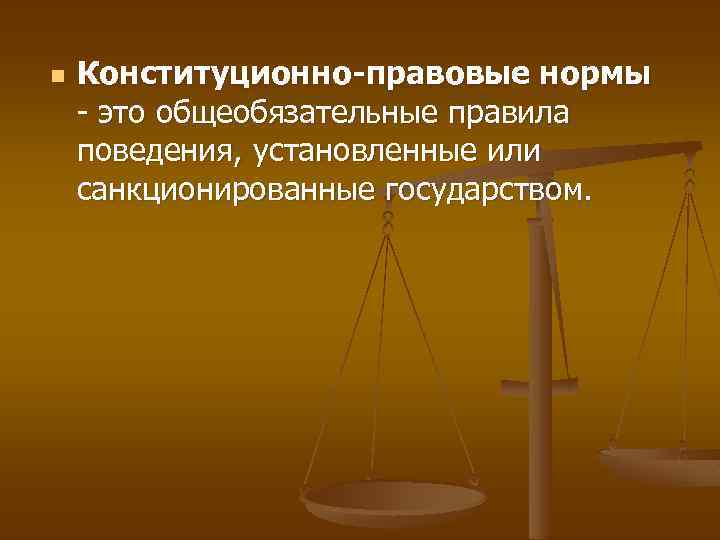 n Конституционно-правовые нормы - это общеобязательные правила поведения, установленные или санкционированные государством.