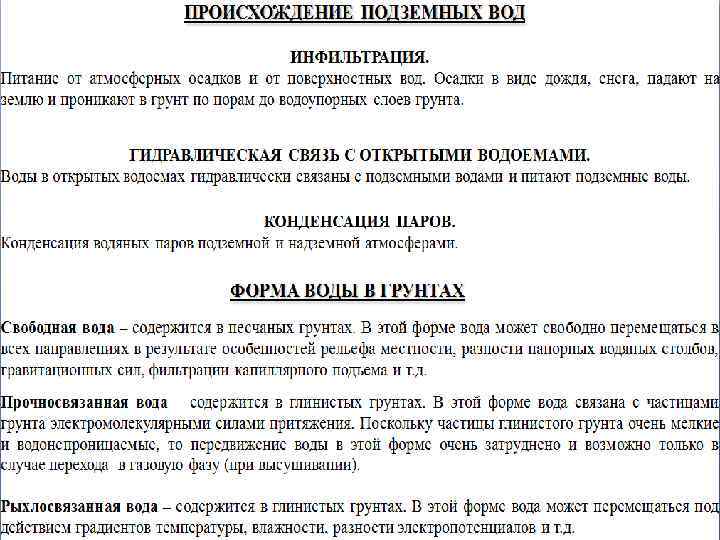 8. ВИДЫ ВОДЫ В ГРУНТЕ И ЕЕ ВЛИЯНИЕ НА СВОЙСТВА ГРУНТОВ. ВОДОПРОНИЦАЕМОСТЬ ГРУНТОВ. КОЭФФИЦИЕНТ ФИЛЬТРАЦИИ. ПОНЯТИЕ О НАЧАЛЬНОМ ГРАДИЕНТЕ НАПОРА. ФИЛЬТРАЦИЯ ВОДЫ В ГРУНТЕ. ЗАКОН ДАРСИ.
