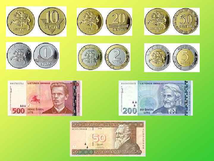 Интересные факты • В 1991 году были выпущены первые, после восстановления независимости Литвы, банкноты, и банкнота номиналом в 50 литов была выпущена с ошибкой — на банкноте изображён вильнюсский Кафедральный Собор, на коньке которого, по центру, стоит статуя Св. Елены. На банкноте 1991 года Св. Елена держит крест в левой руке, в действительности же она держит крест в правой руке. • На банкноте 10 литов выпуска 1993 года заметно изменены контуры Северной Америки и Европы