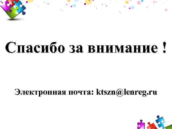 Спасибо за внимание ! Электронная почта: ktszn@lenreg. ru