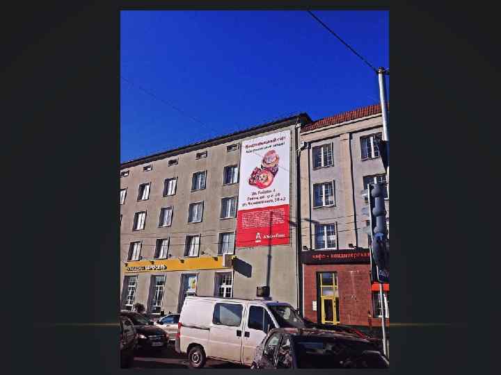 • 1. расположение: перед остановкой Калининград-Плаза, по направлению к ТЦ 7 баллов • 2. Конструкция - биллборд 10 баллов • 3. С точки зрениня исполнения и расположения реклама удачна 8 баллов • 4. Общая оценка - 25 баллов