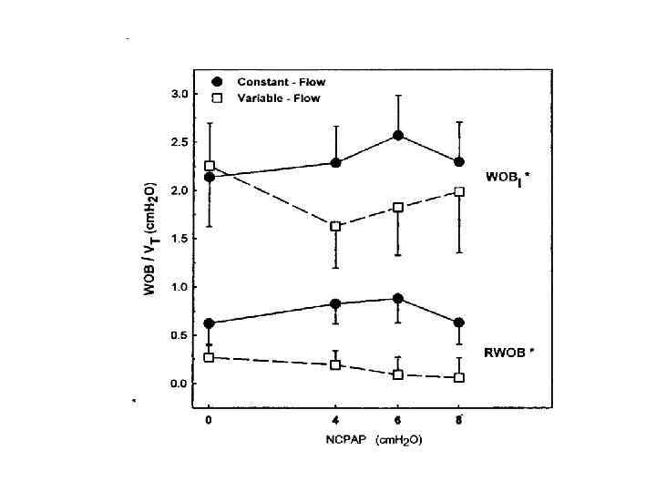 Boumecid H, Rakza T, Abazine A, et al. Influence of three nasal continuous positive airway pressure devices on breathing pattern in preterm infants. Arch Dis Child Fetal Neonatal Ed 2007; 92: F 298 -300 A small study in 13 premature infants (Boumecid, 2007) suggests that variable-flow NCPAP increases tidal volume and improves thoraco-abdominal synchrony to a greater extent than is the case with constant-flow NCPAP and nasal prongs. Доказано преимущество в применении variable-flow NCPAP над constant-flow NCPAP с использованием назальных канюль: в увеличении минутного объёма дыхания улучшении торако-абдоминальной синхронизации и