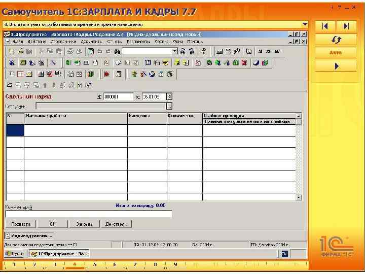"1 С: Зарплата и Кадры" • Программа "1 С: Зарплата и Кадры" - незаменимый помощник при кадровом учете и расчете заработной платы. "1 С: Зарплата и Кадры" широко используется не только на предприятиях, находящихся на хозрасчете, но и в организациях, находящихся на бюджетном финансировании. С помощью "1 С: Зарплата и Кадры" расчет заработной платы можно поставить на автоматическую основу, а также организовать автоматический учет сотрудников, получение статистических справок по составу кадров, а также регистрацию служебных помещений. Универсальные качества "1 С: Зарплата и Кадры" позволяют множеством методов и подходов реализовать любую из выше перечисленных задач и одновременно получать различную отчетность. • Приобрести программу "1 С: Зарплата и Кадры" можно, обратившись к партнеру компании "1 С".