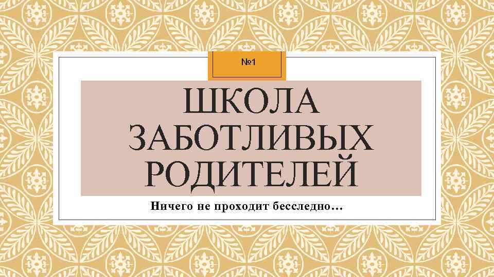 № 1 ШКОЛА ЗАБОТЛИВЫХ РОДИТЕЛЕЙ Ничего не проходит бесследно…