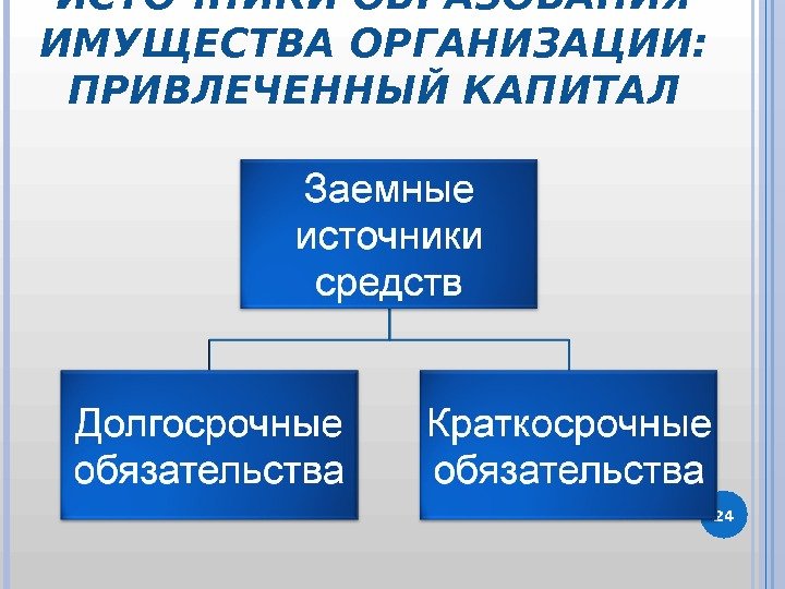 24 ИСТОЧНИКИ ОБРАЗОВАНИЯ ИМУЩЕСТВА ОРГАНИЗАЦИИ: ПРИВЛЕЧЕННЫЙ КАПИТАЛ