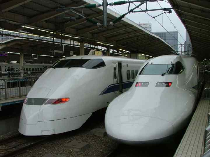 Скоростной поезд «синкансэн» нового поколения модели N-700 • В декабре 2006 года прошли испытания нового «синкансэн» • Расстояние в 515 километров между Токио и вторым по величине японским городом Осака, которое обычный скоростной экспресс покрывает за два с половиной часа, новый состав N-700 преодолевает на пять минут быстрее