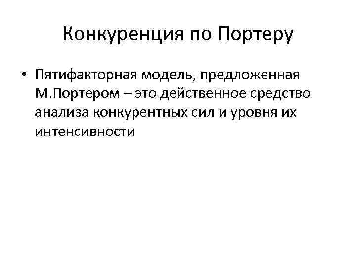 Конкуренция по Портеру • Пятифакторная модель, предложенная М. Портером – это действенное средство анализа конкурентных сил и уровня их интенсивности