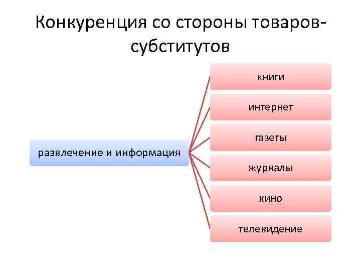 Конкуренция со стороны товаровсубститутов книги интернет газеты развлечение и информация журналы кино телевидение