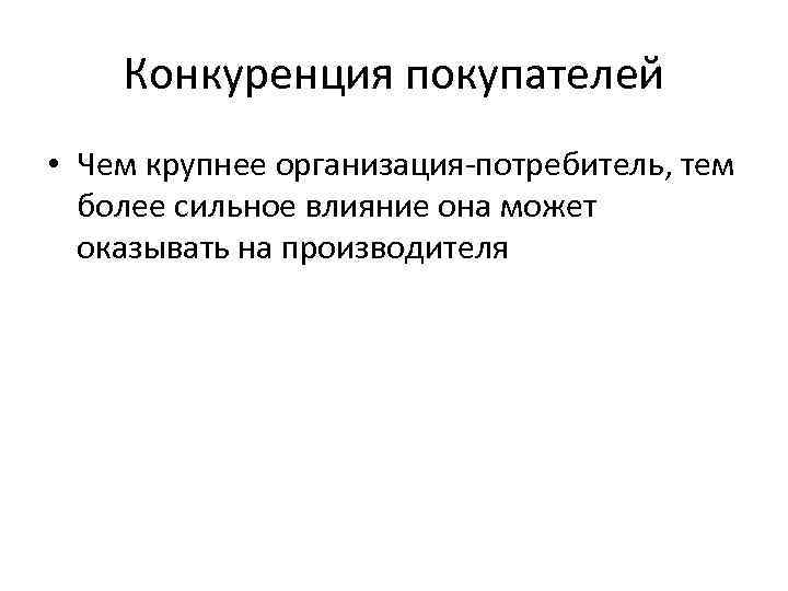 Конкуренция покупателей • Чем крупнее организация-потребитель, тем более сильное влияние она может оказывать на производителя