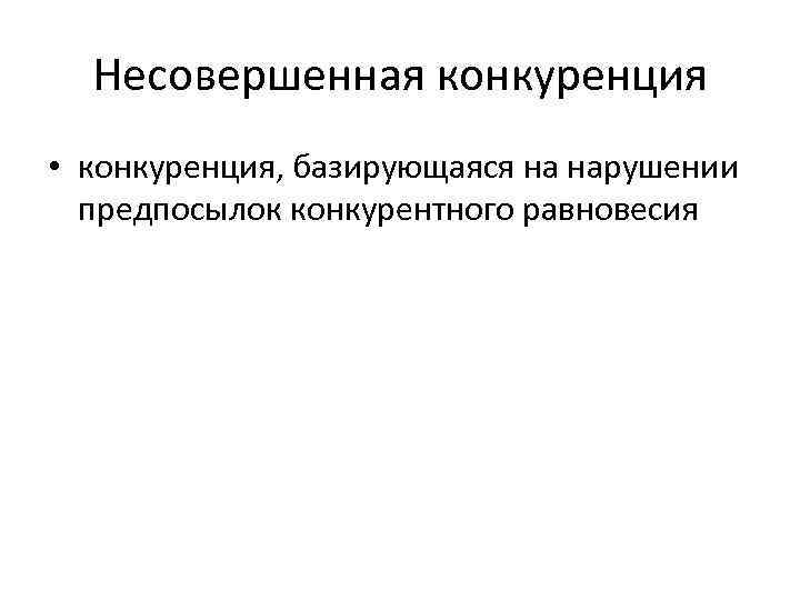 Несовершенная конкуренция • конкуренция, базирующаяся на нарушении предпосылок конкурентного равновесия