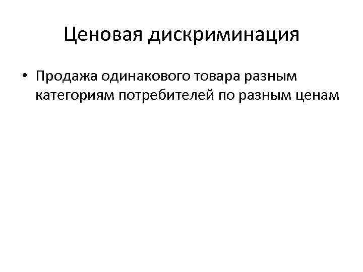 Ценовая дискриминация • Продажа одинакового товара разным категориям потребителей по разным ценам