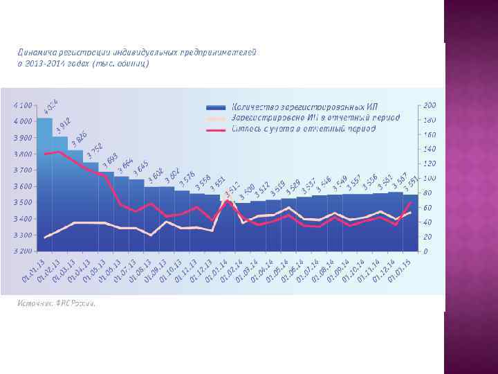 Малые предприятия всего в т. ч. микропредприятия Показатели Число предприятий (на конец года), тыс. Среднесписочная численность работников (без внешних совместителей), тыс. человек Удельный вес среднесписочной численности работников (без внешних совместителей), % Среднемесячная начисленная зар. плата работников 1), руб. Оборот предприятий 2), млрд. руб. Оборот предприятий, % 2010 2014 1644, 3 2103, 8 1415, 2 1868, 2 Средние предприятия 2010 2014 25, 2 13, 7 9790, 2 10789, 5 3320, 0 4431, 1 2426, 7 1585, 8 21 23, 6 7, 1 9, 7 5, 2 3, 5 12367 19201 10612 15774 17246 26065 18933, 8 26392, 2 21, 4 20, 2 5609, 2 7, 6 9699, 3 7, 4 7416, 2 7, 1 5027, 8 4, 8