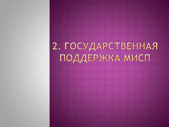 Федеральная программа финансовой поддержки Ми. СП Ведомственные целевые программы поддержки Ми. СП Региональные и муниципальные программы поддержки Ми. СП