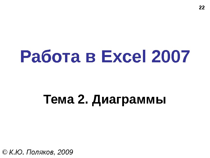 22 Работа в Excel 2007 Тема 2. Диаграммы © К. Ю. Поляков,