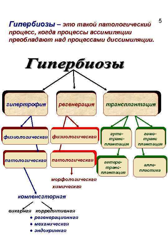 Гипербиозы – это такой патологический 5 процесс, когда процессы ассимиляции преобладают над процессами диссимиляции. гипертрофия регенерация физиологическая патологическая морфологическая химическая компенсаторная викарная коррелятивная ● регенерационная ● механическая ● эндокринная трансплантация аутотрансплантация гетеротрансплантация гомотранс плантация аллопластика