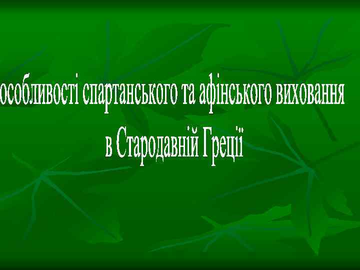 Особливості Афінської системи виховання Виховання і школа в Афінах має багато відмінних рис від системи виховання в Спарті. V ст. до н. е. – рабовласницькі держави досяглися найбільшого розквіту в області філософії, культури, літератури, педагогіки.