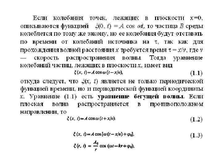 § 1. Волновой процесс. Уравнение волны. Колебания, возбужденные в какой либо точке среды (твердой, жидкой или газообразной), распространяются в ней с конечной скоростью, зависящей от свойств среды, передаваясь от одной точки среды к другой. Чем дальше расположена частица среды от источника колебаний, тем позднее она начнет колебаться. Иначе говоря, фазы колебаний частиц среды и источника тем больше отличаются друг от друга, чем больше это расстояние. При изучении распространения колебаний не учитывается дискретное (молекулярное) строение среды и среда рас сматривается как сплошная, т. е. непрерыв но распределенная в про странстве и обладающая упругими свойствами. Процесс распространения колебаний в сплошной среде называется волновым процессом (или волной). При распространении волны частицы среды не движутся вместе с волной, а колеблются около своих положений равновесия. Вместе с волной от частицы к частице среды передаются лишь состояние колебательного движения и его энергия Поэтому основным свойством всех волн, независимо от их природы, является перенос энергии без переноса вещества.