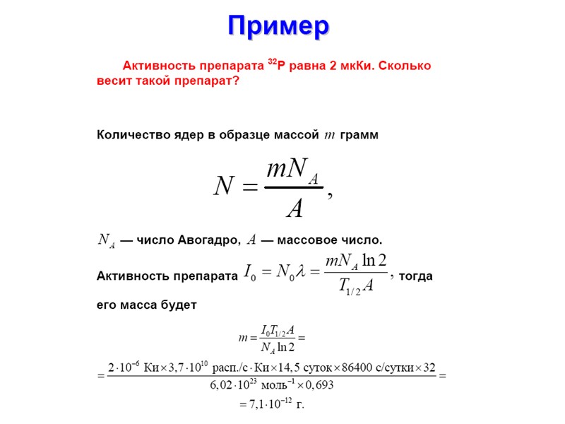 Задание на дом Задача 2. Найти активность альфа источника, содержащего 1 мг 248Cm. Задача 3. Имеется образец, содержащий 1.5 мг 249Bk. Определить количество изотопа 249Cf, образовавшегося в образце через 100 дней.