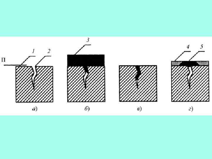 Контроль скрытых дефектов (методы неразрушающего контроля) • визуально-оптический; • компрессионный метод; • капиллярные методы (красок, люминесцентный, керосиновых проб); • магнитно-порошковый; • электромагнитный метод; • ультразвуковой метод.