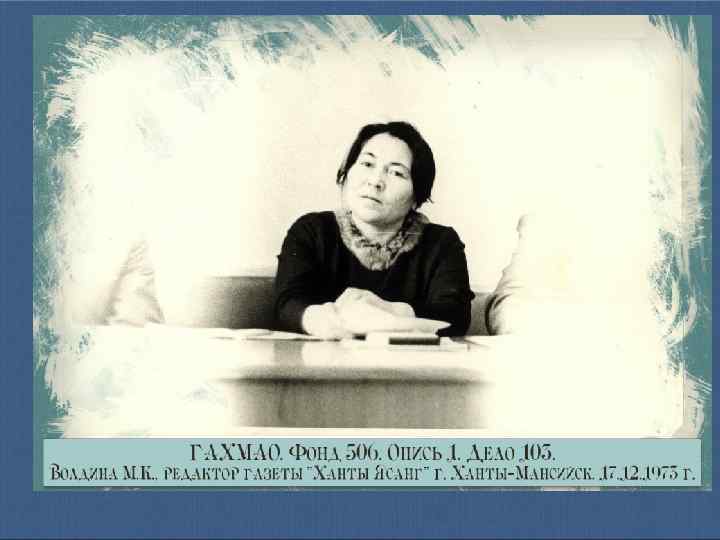 М. К. Волдина, редактор газеты «Ханты ясанг» . г. Ханты-Мансийск. 17. 12. 1973 г. ГАХМАО. Фонд 506. Опись 1. Дело 103.