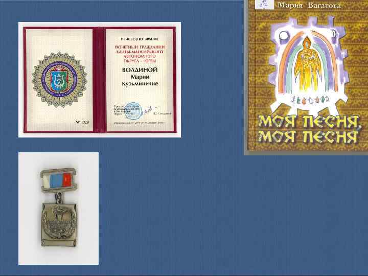 Удостоверение Марии Кузьминичны Волдиной о присвоении звания Почетный гражданин Ханты. Мансийского автономного округа – Югры. Мария Кузьминична Волдина является Заслуженным работником культуры РСФСР.